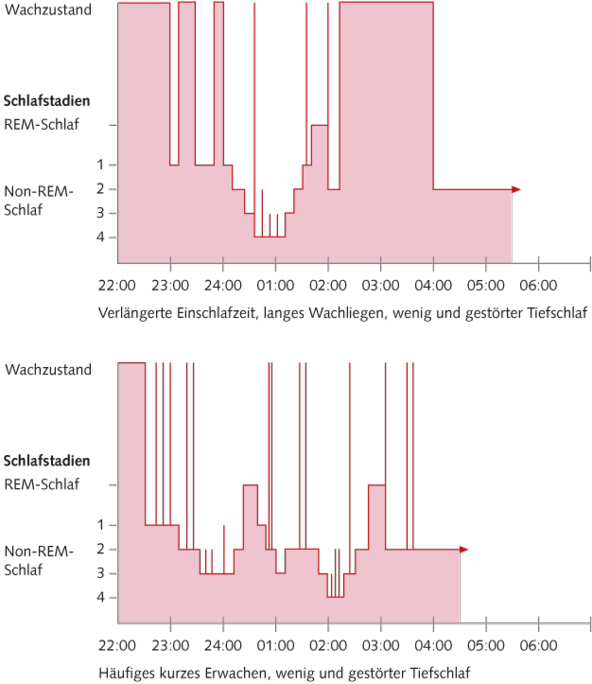 Schauen wir uns vergleichend hierzu die Abbildung 4.9 an. Sie zeigt die typischen Merkmale einer Insomnie, zum Beispiel: