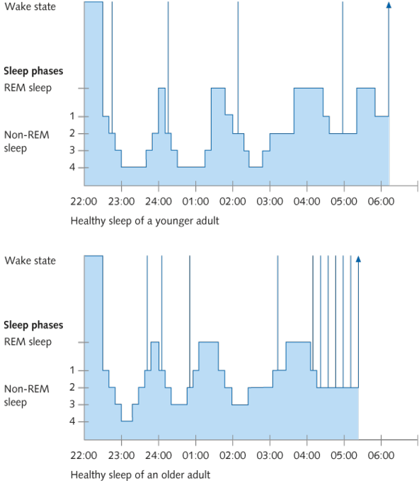 Avec l'âge, le profil du sommeil se modifie. Ce processus est d'ordre physiologique et n'a donc pas de signification clinique :
